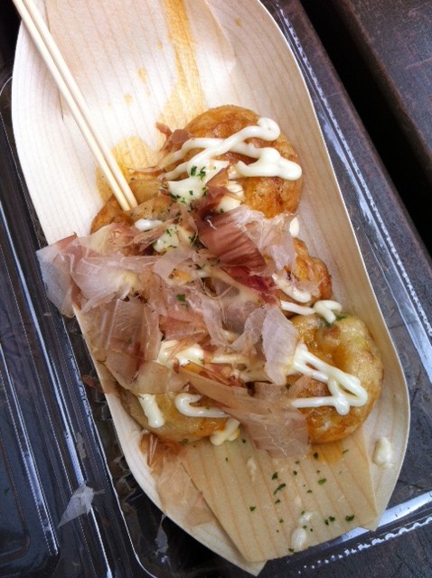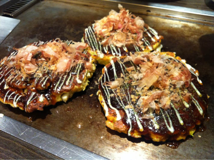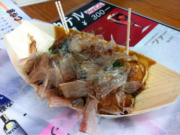 さらに道頓堀をうろついて、いかにも夜のお仕事してます!って感じのにーちゃん達が焼いてるたこ焼きを軽妙なトークにつられて買って、道頓堀沿いのベンチに座ってのんびりいただきました。