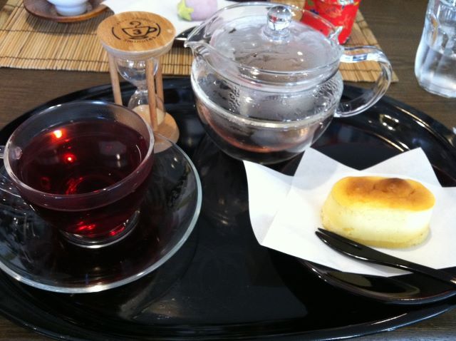 お菓子も付いてきます。今回はハーブティーだったので洋菓子(チーズケーキ)を選びました。